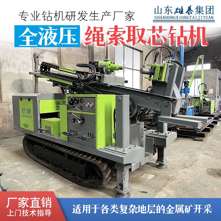山東雄泰集團自主研發(fā)生產的履帶式全液壓鉆機的無線遙控行走、液壓桅桿自動升起,動力頭自動左側移機提鉆為該款鉆機一大特色。其中桅桿自動升起,動力頭移機為我公司實用新型專利,極大緩解了現(xiàn)場施工的難度,有效減小了鉆機施工人數(shù),節(jié)約了成本,該履帶式全液壓鉆機分別采用76KW/115KW發(fā)動機,動力強勁,扭矩大,適用于各類復雜地層的金屬礦開采。